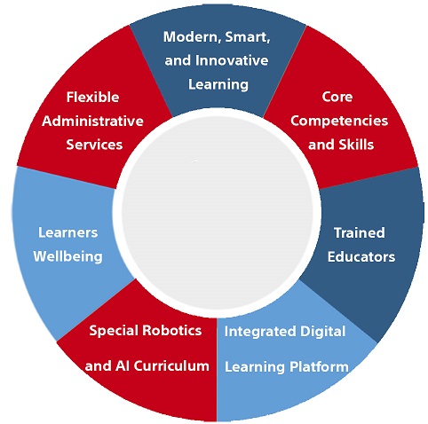 تُزوّد Global Education المدرسة بـ "Global Education Institute - GEI”، وهي منصّة تقنيّة متكاملة فريدة للطّلّاب والمعلّمين وأولياء الأمور والإداريّين، يتمّ من خلالها الوصول إلى جميع التّطبيقات التّعليميّة والإداريّة والمحتوى الرّقميّ. تتكوّن هذه المنصّة من المكوّنات التاّلية: